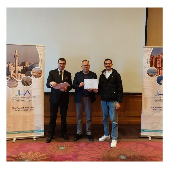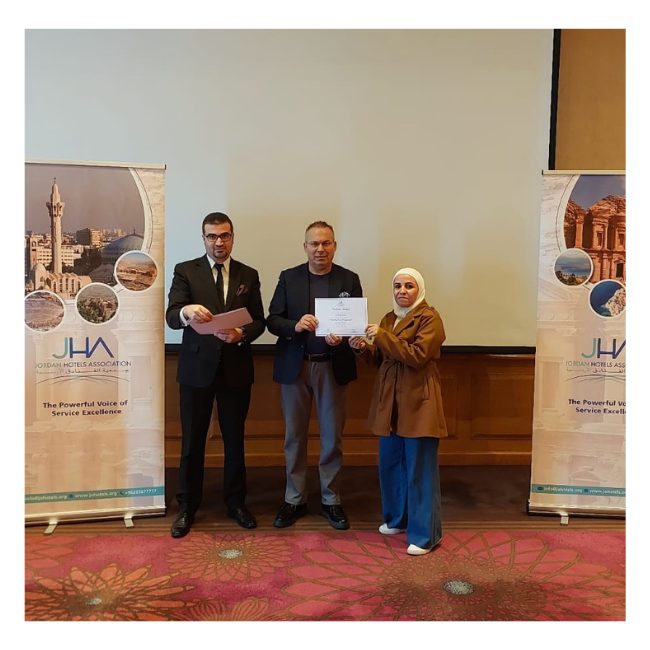 This course is part of the Jordan Hotels Association’s ongoing efforts to achieve excellence in the hospitality sector by improving the performance of hotel employees and elevating the quality of hotel services. These efforts aim to strengthen the Kingdom’s reputation as a leading tourist destination in the region.