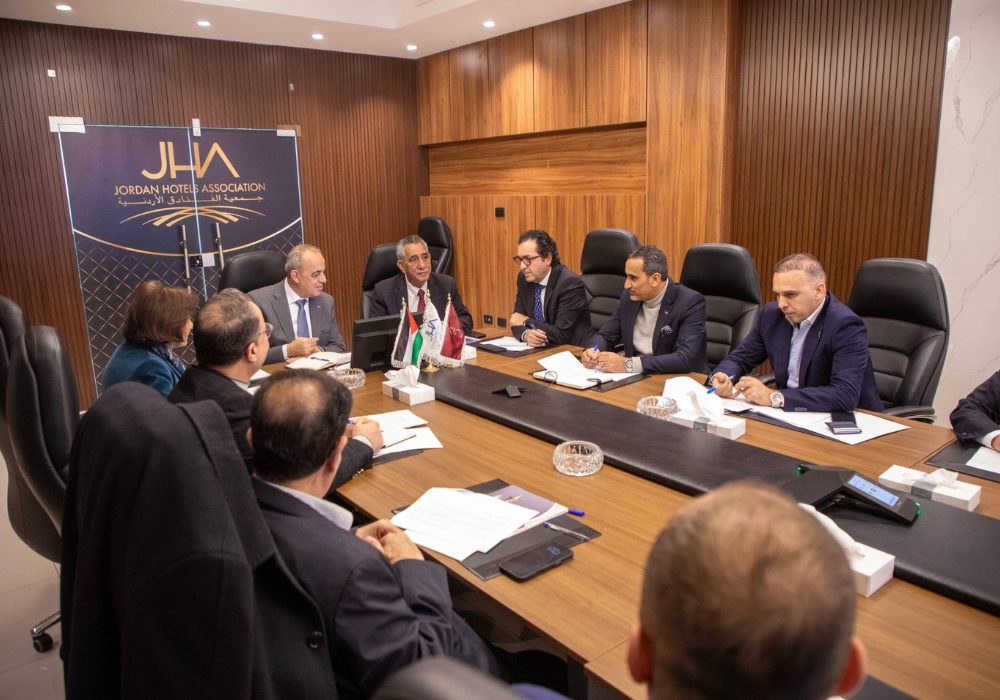 استقبل رئيس مجلس إدارة جمعية الفنادق الأردنية، السيد حسين هلالات، في مقر الجمعية، معالي وزير السياحة والآثار الدكتور عماد حجازين، الذي رافقه مدير عام هيئة تنشيط السياحة الأردنية السيد رمزي المعايطة، إلى جانب فريق من كوادر الوزارة، وذلك بحضور أعضاء مجلس إدارة جمعية الفنادق الأردنية، في لقاء رسمي عكس روح المسؤولية الوطنية والتشاركية الحقيقية بين القطاعين العام والخاص.