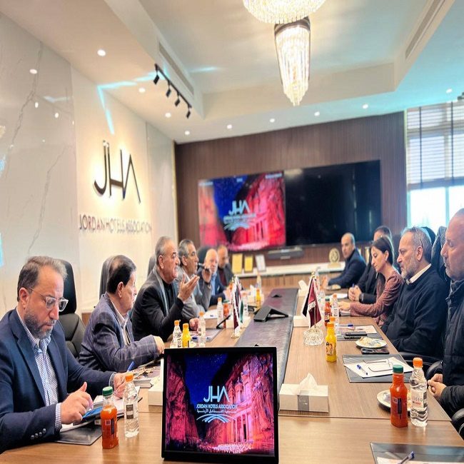 استقبل رئيس جمعية الفنادق الأردنية، المهندس عبدالحكيم محمود الهندي، وأعضاء مجلس إدارة الجمعية، رئيس لجنة السياحة في غرفة تجارة الأردن، جمال الرفاعي، وأعضاء اللجنة، وذلك في لقاءٍ رسمي عُقد بمقر الجمعية