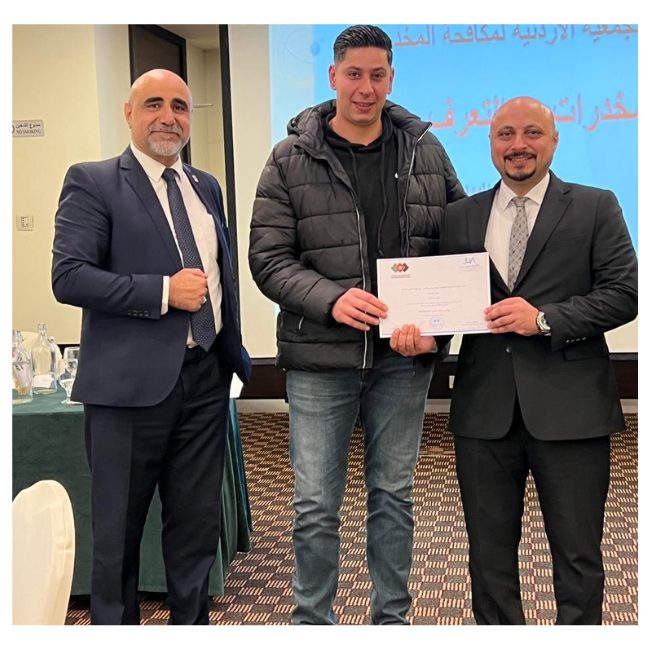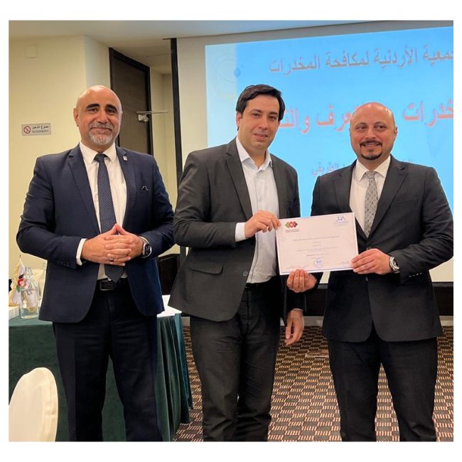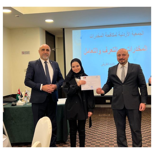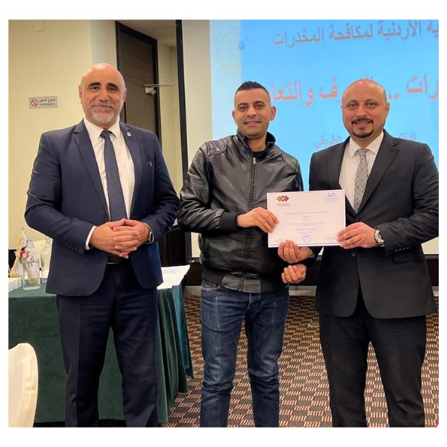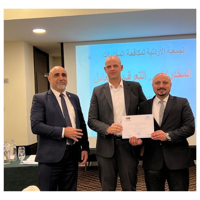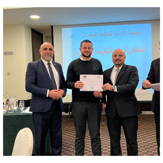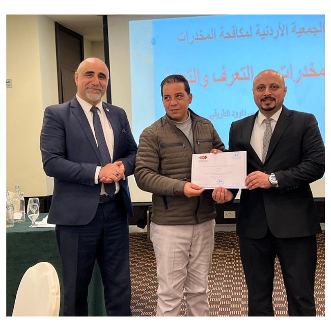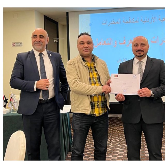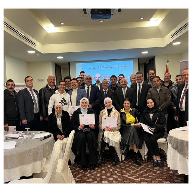 عقدت جمعية الفنادق الأردنية بالتنسيق مع الجمعية الأردنية لمكافحة المخدرات دورة توعوية بعنوان "المخدرات: أساسيات التعرف والتعامل وتأثيرها على الإنسان"، استهدفت موظفي المنشآت الفندقية في محافظة عمان. "المخدرات: أساسيات التعرف عليها وإدارتها وتأثيرها على البشر." واستهدفت الورشة العاملين في المنشآت الفندقية في محافظة عمان.