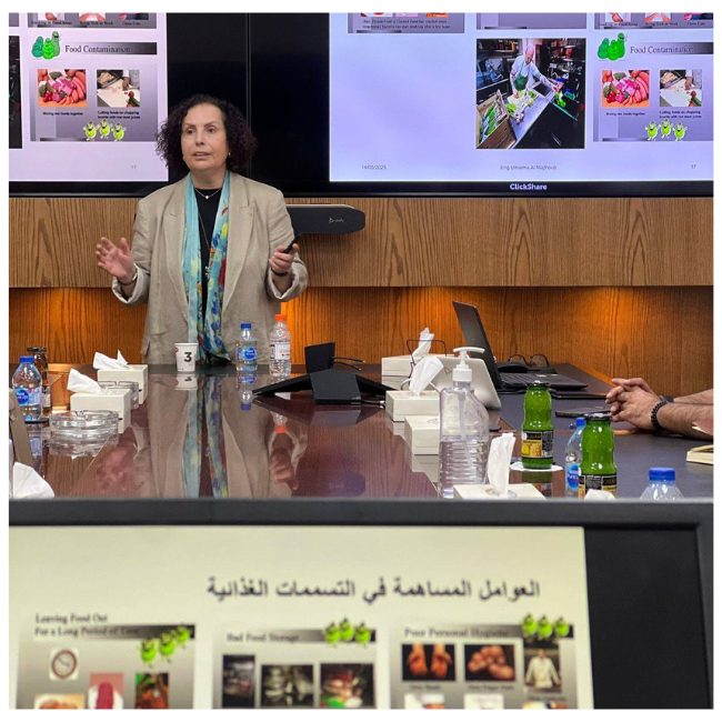 The workshop was delivered by Engineer Omaima Al-Majthoub and focused on the principles of the HACCP system as an effective tool to ensure food safety. Key topics included types of food contamination, causes of food poisoning, and preventive measures to mitigate health risks in hotel work environments.